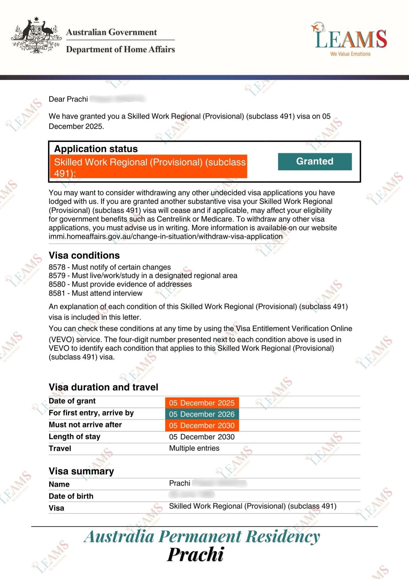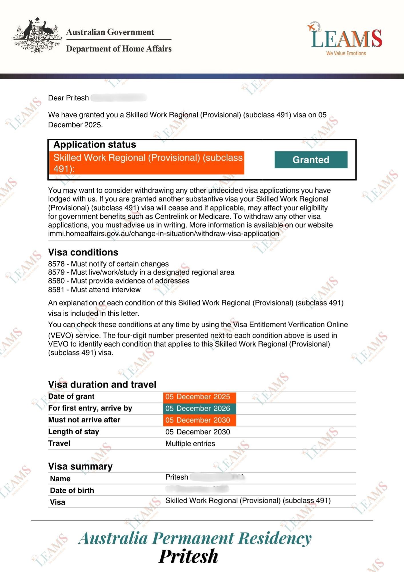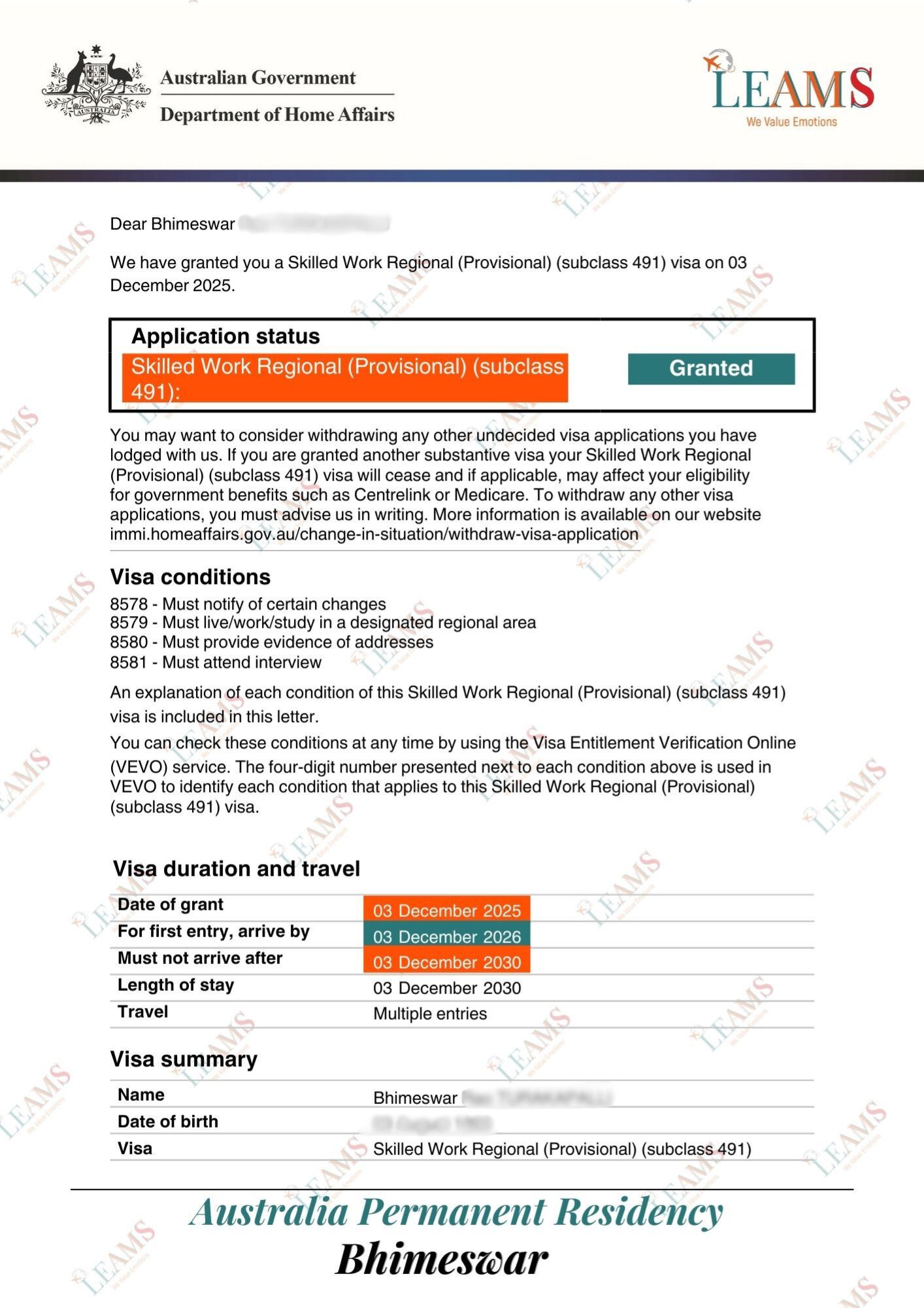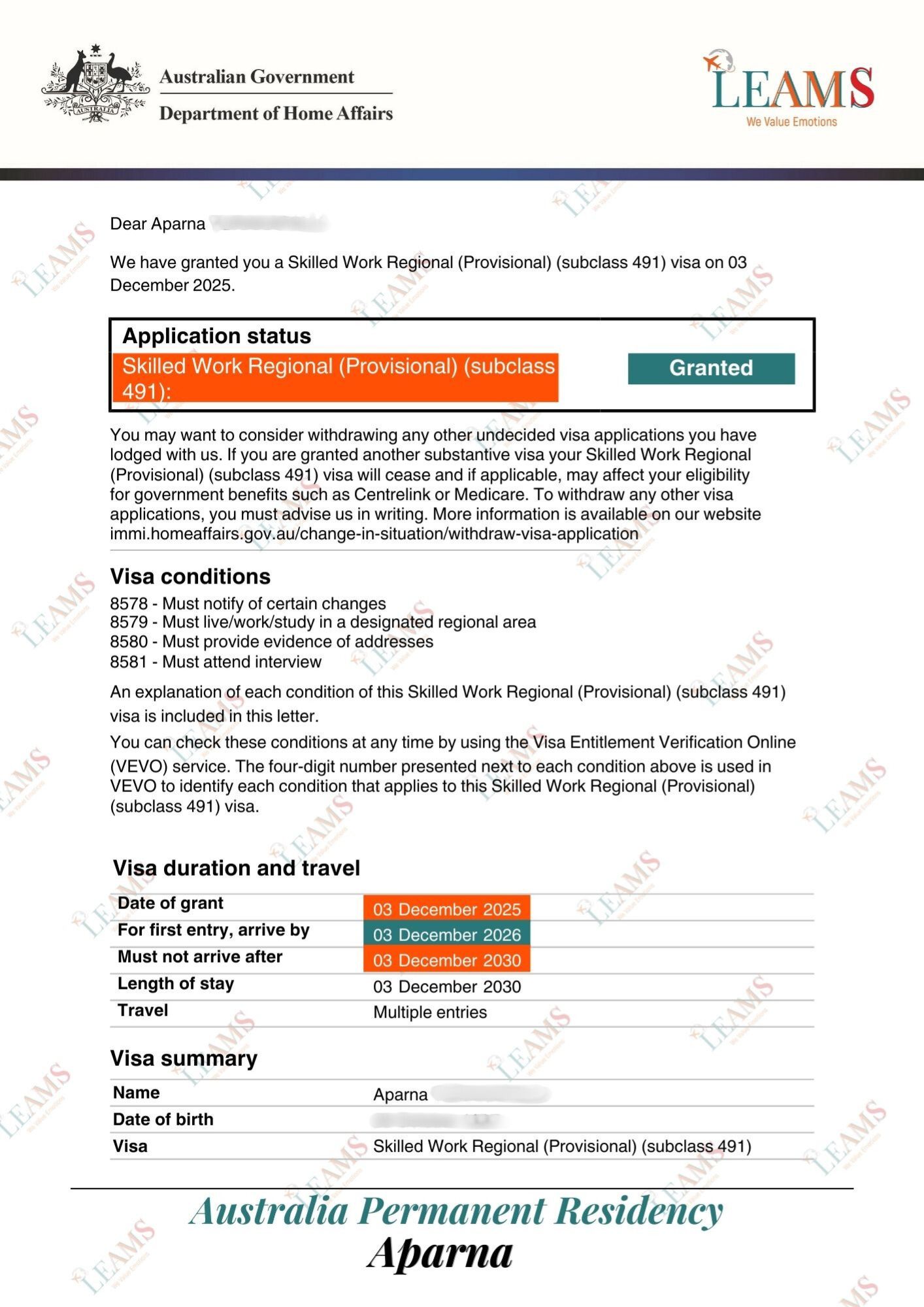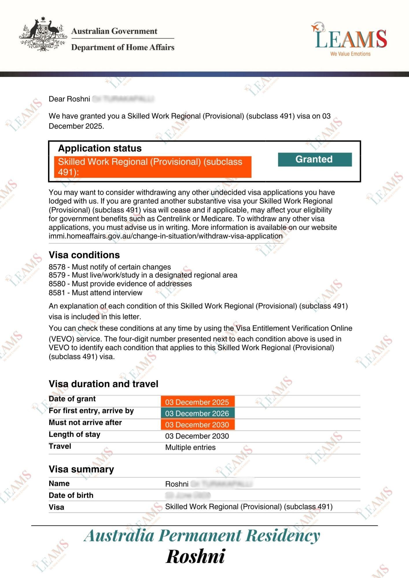 Subclass 491 - Permanent Residency